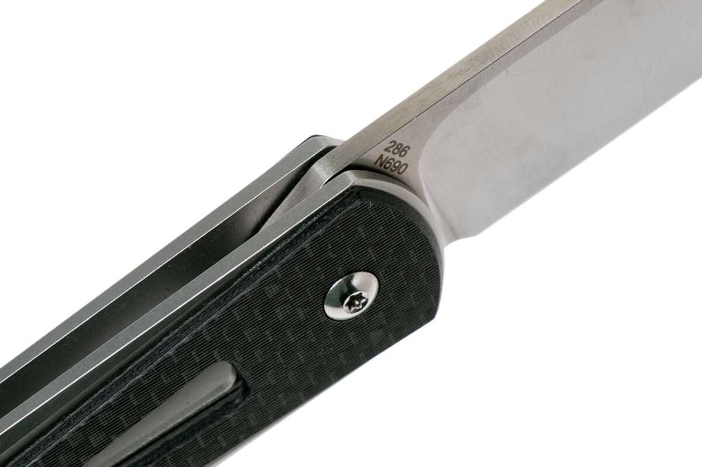 Клинок виготовлений з нержавіючої австрійської стали Böhler N690 найвищої якості. Ця сталь має багато спільного з такими марками, як 1.4528, VG10 і 440MOD. Це нержавіюча високолегована сталь, розроблена спеціально для інструментів харчової промисловості та для корозійностійких ножів з вимогливими завданнями різання. N690 має відносно високу кількість вуглецю для нержавіючої сталі, близько 1 відсотка. З цієї причини N690 твердіше, ніж більшість сплавів з нержавіючої сталі на ринку. Він дуже добре ріже, а також може бути легко заточений до дуже тонкої кромки. Завдяки такому поєднанню чудового утримання кромок в обслуговувані сталь N690 також часто використовується для хірургічних інструментів. Просто промийте і висушіть лезо, коли ви закінчите його використовувати.