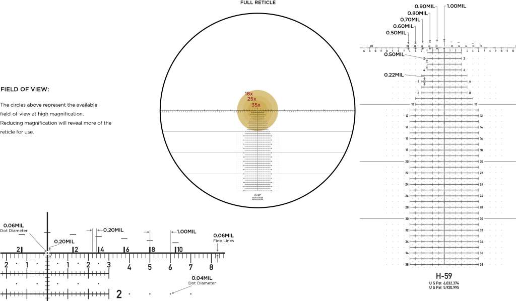 - Центральна трубка має нестандартний діаметр в 35мм, що дозволяє мати 100 МОА/29 MIL вертикальних поправок і при цьому не жертвувати якістю зображення.