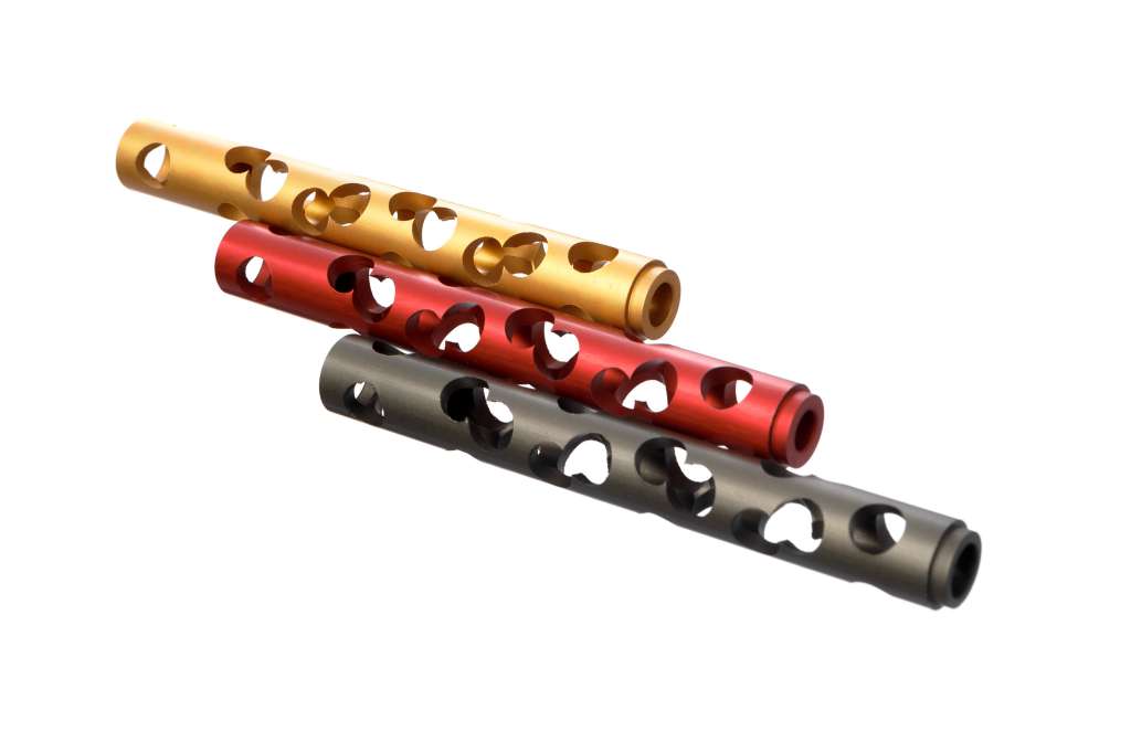 В комплекте с глушителем идёт четыре сменные вставки, что даёт возможность использовать его с несколькими калибрами.