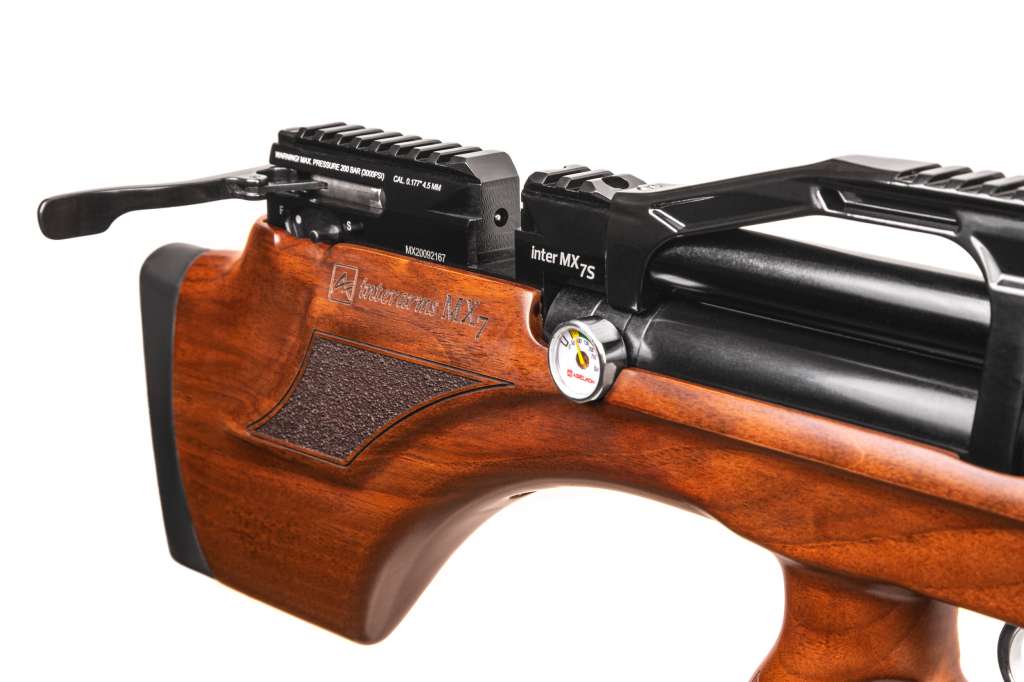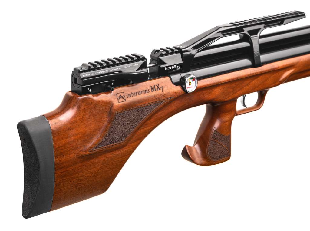 Пневматична PCP гвинтівка Aselkon MX7-S Wood - укорочена версія моделі МХ-7. Ложе з регульованим підщічником, виконано з дерева (горіх), має м'який потиличник, що не тільки пом'якшує і без того незначну віддачу, але і забезпечує більш зручну вкладку, завдяки чому ви зможете вести більш кучну і прицільну стрільбу.