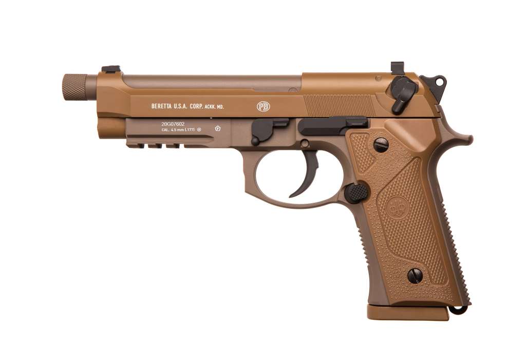 Пневматичний пістолет Umarex Beretta M9A3 FDE фірми UMAREX. Компанія широко відома, як виробник пневматичного і газової зброї, що є точною копією своїх «вогнепальних побратимів». Цьому виробнику належать права на виробництво копій зброї від всесвітньо відомих збройових марок. Представлена модель повністю виготовлена з металу. Рухомий затвор з функцією Blowback. Ствол сталевий, гладкий із зовнішнім різьбленням для супрессора або глушника. Під стволом розташована планка для додаткового обладнання. Рукоятка зручно підігнана під руку, в ній знаходиться магазин на 15кульок ВВ з відсіком для 12ти грамового балона СО2. Модель пістолета виконана в кольорі пустельного камуфляжу FDE (Flat dark earth). Вага пістолета, його бездоганне зовнішню схожість з бойовим, тактильні відчуття, система Blowback - дасть вам відчуття того, що у вас в руках легендарна бойова Beretta.