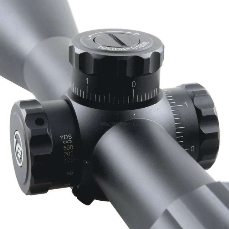 Приціл оптичний Vector Optics Marksman 6-25x50 (30mm) SFP в другій фокальній площині має барабанчики поправок з фіксацією, тонку гравіровану сітку і достатню кратність щоб стати відмінним доповненням до РСР або малокаліберної гвинтівки, тому що відбудова параллакса можлива вже від 10 метрів. У комплект прицілу входять: кришки об'єктива та окуляра на гумках, змінний важіль управління кратністю, антивідблискова насадка на об'єктив, змінні барабанчики поправок і кільця.