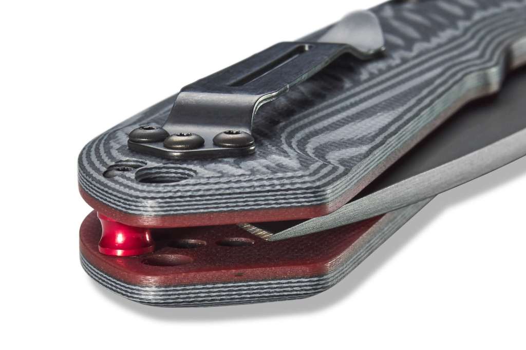 Форма і зміст в одному ножі. Перший варіант в сімействі Freek, який об'єднує два неймовірно міцних матеріали: G10 і CPM-M4. Сіро-чорний багатошаровий G10 фрезерован для забезпечення відмінного зчеплення і стилю, в той час як червоний базовий шар G10 і розпірки корпусу з анодованого алюмінію надає рукояткам додатковий цікавий відтінок. Високоміцне лезо з "швидкоріза" CPM-M4 розроблено для важких умов експлуатації та виходить за рамки того, що і без того міцний Freek повинен був робити. Цей ніж - справжній супер Фрік.