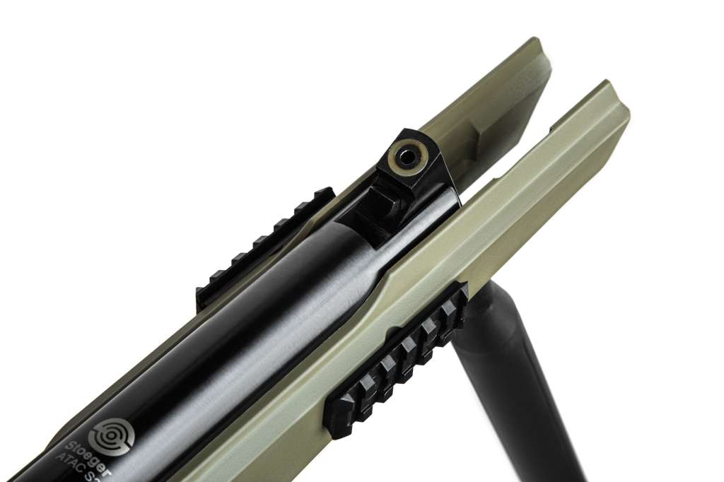Серія ATAC розроблена Stoeger у співпраці з фахівцями з вогнепальної зброї правоохоронних органів і з фахівцями зі снайперського зброї. Включає в себе 3 планки Пікатінні для прицілу, сошок і аксесуарів. У гвинтівки відсутні відкриті прицільні пристрої, а тому в комплект відразу включений відмінний приціл 3-9x40 AO. Також гвинтівка оснащена регульованим двоступінчастим спусковим механізмом T2. ATAC TS2 заснована на простому і безшумному механізмі з газовою пружиною, який зводиться "переломом" ствола. Газова пружина знижує вібрацію і усуває звук, що виходить від традиційної силової установки зі сталевою пружиною. Точність цієї системи підвищена за рахунок усунення вібрацій і сталості швидкостей. А інтегрований саундмодераторів S2 зводить звук пострілу до мінімуму.