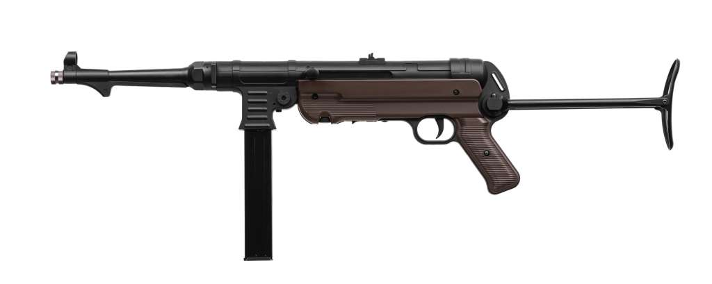 Модель газобалонного багатозарядного напівавтоматичного пістолет-кулемета з імітацією ефекту віддачі як від вогнепального аналогу завдяки функції Blowback. Пневматика стилізована під легендарну зброю другої світової війни, MP40. Модель обладнана складаним металічним прикладом. В якості джерела живлення використовуються два балони СО2 об’ємом 12 г, що монтуються у магазин. Гарний вибір для розважальної стрільби. Особливо рекомендований для колекціонерів та цінувальників зброї другої світової війни.