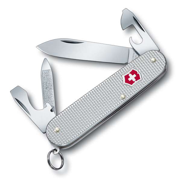 Швейцарський армійський ніж Victorinox Cadet відрізняється легкістю і компактністю. Не дивлячись на свої маленькі розміри (84мм.), він має всі основні інструменти, які незамінні в повсякденному житті. Ніж виготовлений з високоякісної нержавіючої сталі. Рукоять виконана з сріблястого алюмінію з рифленням Alox і кольоровим логотипом Victorinox. Вага: 55,7 м