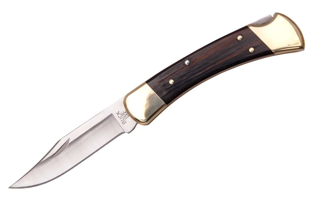 Ніж-легенда! Стриманість і краса простих ліній - це основні риси, якими можна охарактеризувати цей ніж. Без зайвих габаритів і маси, що так часто зустрічаються у інших ножів - Buck 110 виконує свої функції просто бездоганно. Рукоять з дерева і латуні. Замок - класичний надміцний back-lock. Історія ножа У 1963 році ринок США заполонили дешеві складні ножі. До цього моменту компанія Альфреда Бака, сина того самого Хойта Бака, який заснував імтерію класичних американських ножів, вже міцно влаштувалася на ринку. Нові моделі "складнів" були цікаві за своїм рішенням, алемали безліч недоліків, серед яких були і незручність утримання ножа в руці, і швидка втрата заточки у леза, і знос механізму розкриття ножа, і багато інших. Але ось у фірми Buck Knives Inc складних ножів ще не було. Тоді її глава, купивши кілька моделей найпопулярніших на ринку складних ножів і розібравши їх, придумує свій варіант. При цьому заради нього він створює і патентує новий замок «back-lock», який надійніше ножових замків того часу. В цьому ж році новинка була продемонстрована друзям і інвесторам. Новий складаний ніж відразу ж знаходить собі прихильників і вже в 1964 році починається масове виробництво найперших моделей легендарного ножа 0110 Folding Hunter. Ця модель складного ножа виявилася настільки продуманою і надійної, що є однією з найпопулярніших і по сей день.