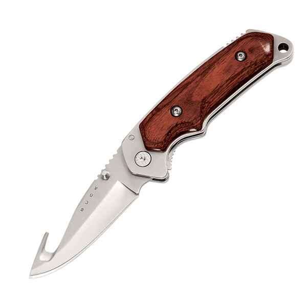 Справжній ніж для полювання, потужний, з широким товстим лезом (3 мм товщини), по гостроті не поступається бритві, головною особливістю якого є гак на кінці (мисливці використовують його для того, щоб зручно і швидко знімати шкуру з убитих тварин). Рукоятка широка і зручна, з особливим виступом для упору великого пальця. Виконана вона з благородного полірованого дерева насиченого червоного відтінку. Заточка стандартна типу плейн, замок, зарекомендував себе незмінною надійністю, Liner Lock. Ніж в комплекті має вишуканий чохол і виїмку для темляка.