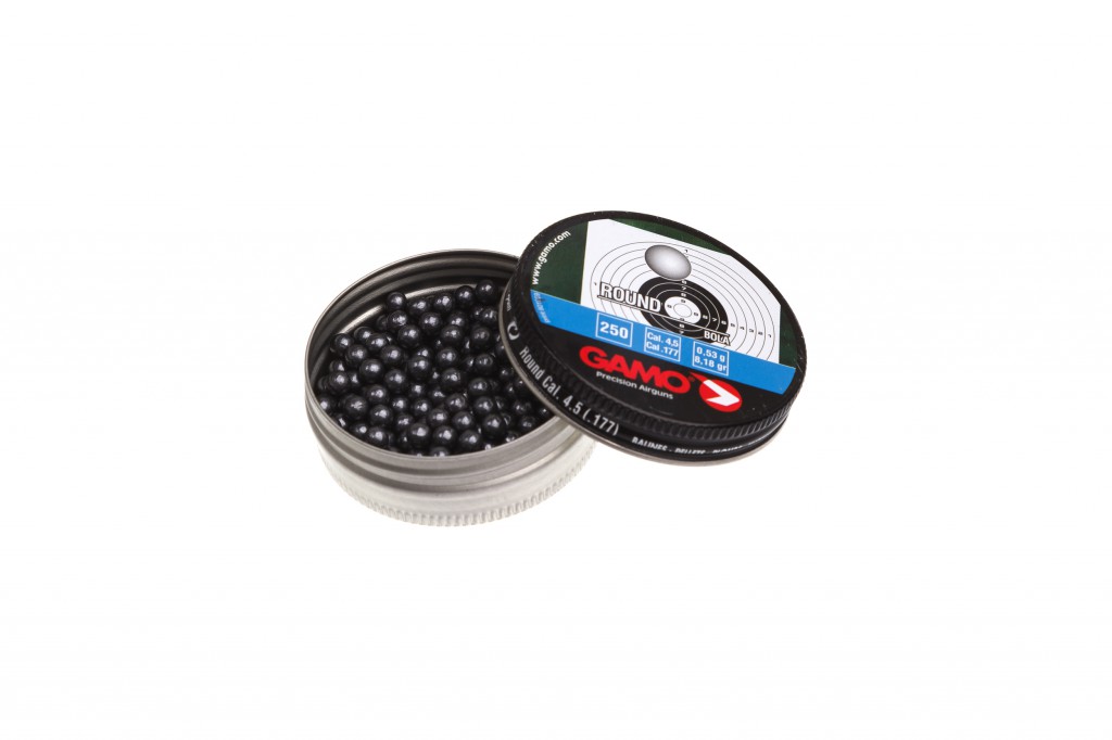 Головна різниця від сталевих кульок BB є те, що круглі кулі Gamo Round виготовляють зі свинцю. Кулі GAMO Round підходять для зброї з нарізним стволом.Свінцеві круглі кулі під час пострілу добро розкручуються нарізамі, а це збільшує їх аеродінамічні властивості. Мають чудову пробивну здатність.Точність и купність стрільби в кілька разів перевіщує показники сталевих кульок BB.
