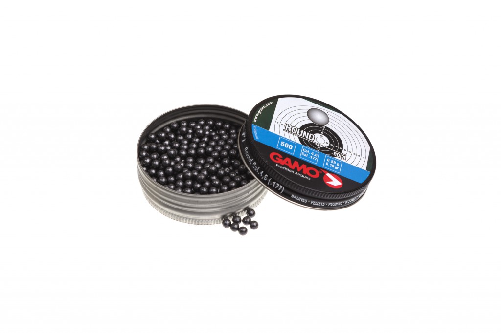 Головна відмінність від сталевих кульок BB – круглі кулі Gamo Round виготовляються зі свинцю. Кулі GAMO Round розраховані на зброю з нарізним стволом. Свинцеві круглі кулі під час пострілу добре розкручуються нарізами, а це збільшує їх аеродинамічні властивості. Мають чудову пробивну здатність. Точність та купність стрільби в кілька разів перевищує показники сталевих кульок BB. Приянятні для розважальної стрільби та стрільби по мішенях, як з гвинтівок, так і з пістолетів.