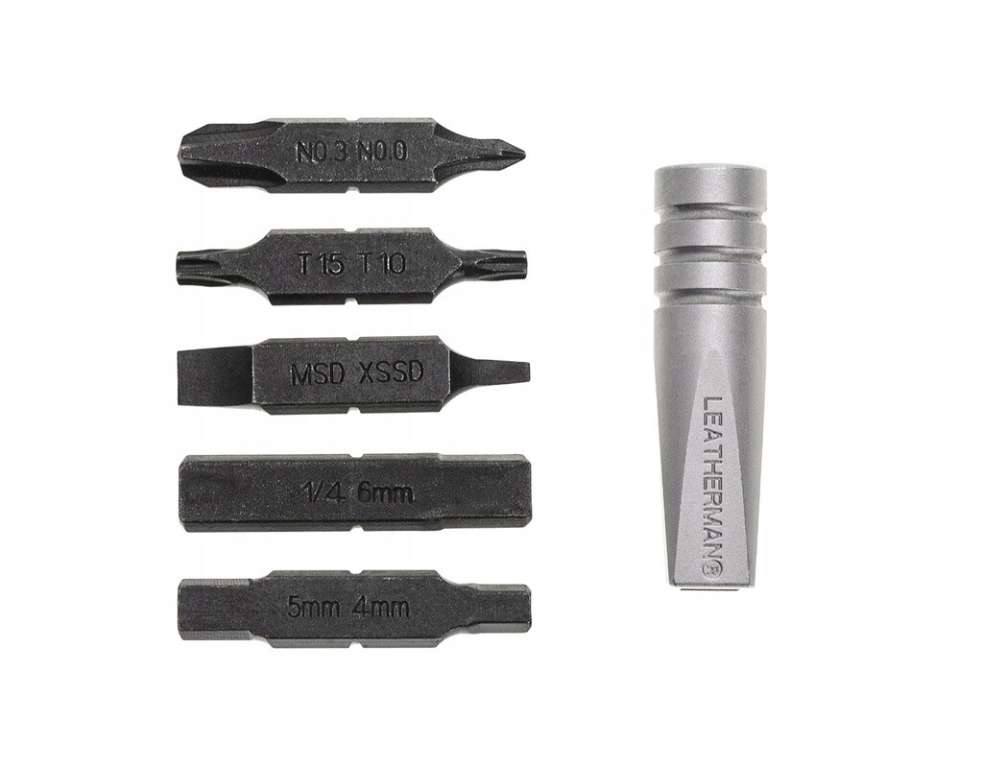 Додайте 10 інструментів до вашого улюбленого тулу Leatherman за допомогою знімного перехідника під біти, якщо ваш тул не має битоутримувача. У комплект входить "бітдрайвер" та 5 двосторонніх насадок з інструментальної сталі. Подовжувач-перехідник також працює зі звичайними шестигранними бітами розміром 1/4 дюйма, а у зручному тримачі також можна зберігати стандартні шестигранні біти, що дає вам додаткові функціональні можливості для вашого улюбленого хобі.