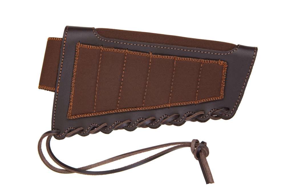 Є патронташ для 6 патронів для нарізної зброї 30-06 калібру. Фіксація муфти до прикладу за допомогою шнурівки.