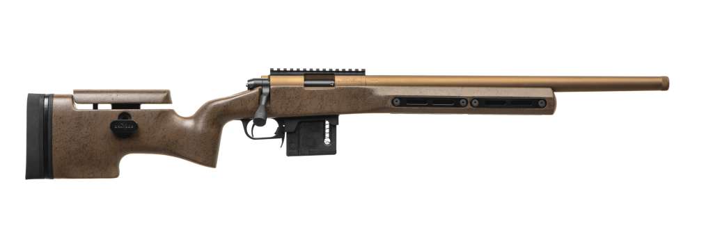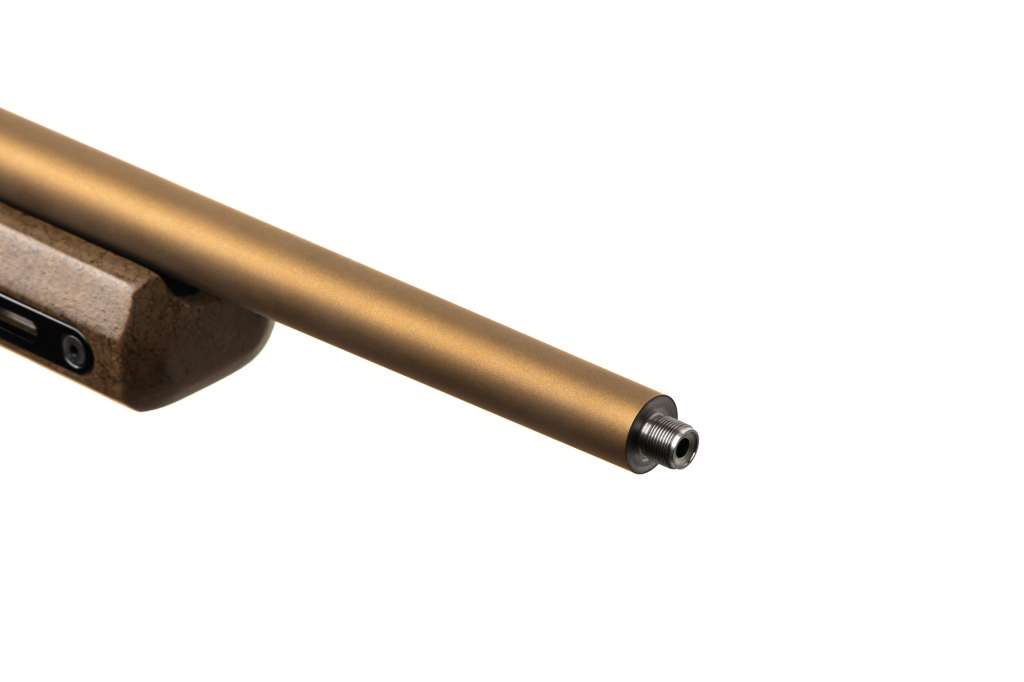Модель VUDOO V22 22LR BARRELED ACTION 20'' MTU BROWN RIDGEBACK BROWN выполнена в композитном ложе Grayboe Ridgeback (компания бывшего соучредителя McMilan Firearms Райана Макмилана) коричневого цвета с регулируемой по высоте щекой приклада, а также утяжеленном стволе MTU длиной 20 дюймов.