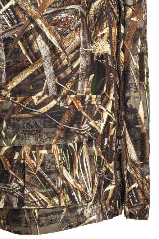 Куртка водонепроникна і дихаюча, виготовлена з безшумною зовнішньої мікрофібри з зносостійкими вставками.