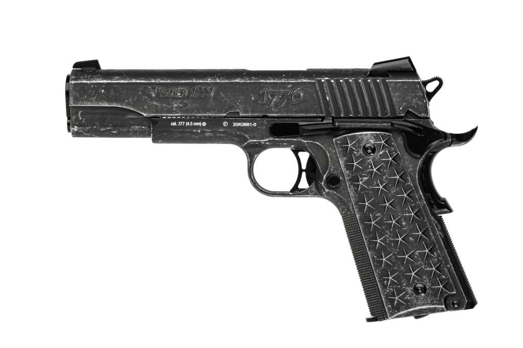 Стильна варіація легендарного пістолета Кольт 1911 від компанії Sig Sauer, натхненна багатою патріотичної історією США, пневматична версія цього унікального американського пістолета має ті ж спеціальні руків'я, прикрашені 50 зірками (по 25 з кожного боку), що представляють кожен штат. Спеціальна "пошарпана" обробка повністю металевих направляючої і рами включає патріотичні гравюри, такі як 13 зірок на верхній частині і «We The People» та «1776» з боків.