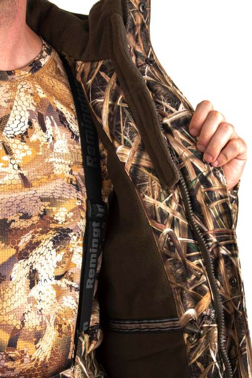 Костюм Remington володіє високим коміром. Це захистить вас від вітру, попадання на шкіру дощу і снігу, а також і від механічних пошкоджень.