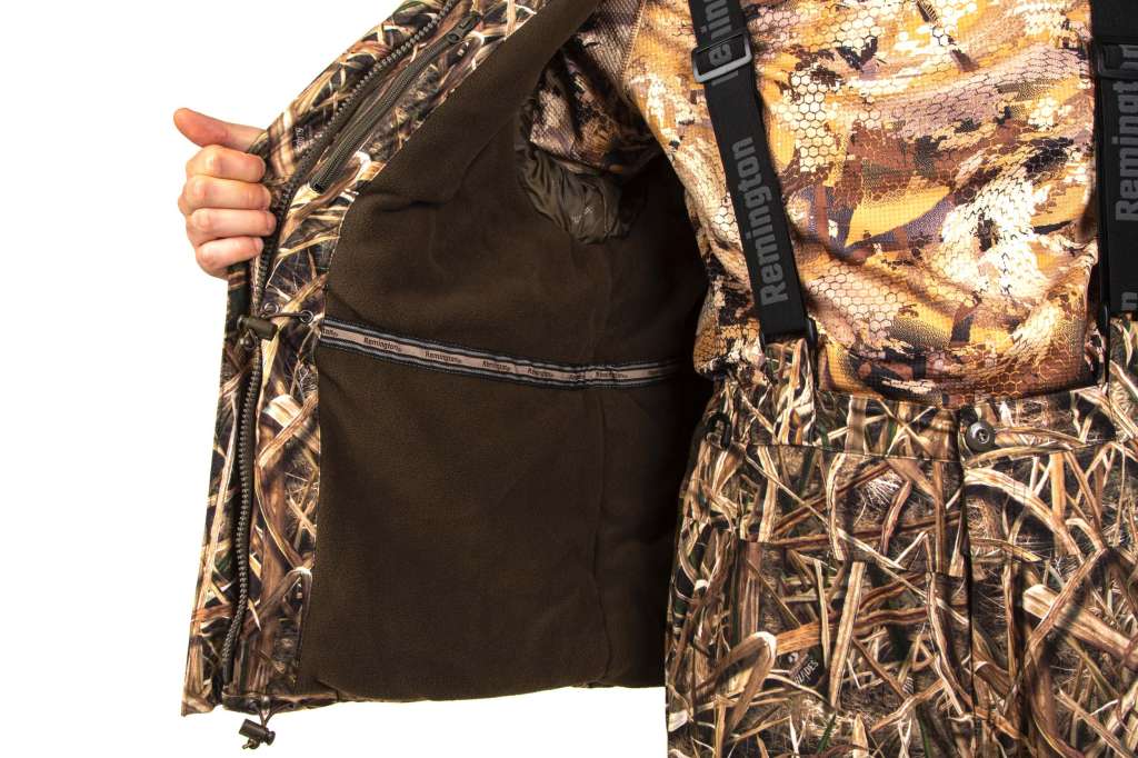 Костюм Remington володіє високим коміром. Це захистить вас від вітру, попадання на шкіру дощу і снігу, а також і від механічних пошкоджень.