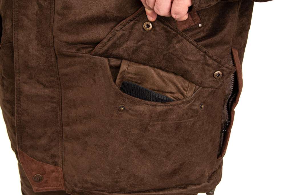 Штани й куртка костюма для полювання і туризму Remington Hunter's Winter регулюються манжетами, мають двозамкова застібку-блискавку з клапаном. Передбачено і регульований пояс, а також накладні кишені з клапаном. У комплект входить і спеціальна сигнальна пов'язка. Універсальність кольору і фасону дозволить використовувати ці речі не тільки як спецодяг на природі, а й у місті взимку.