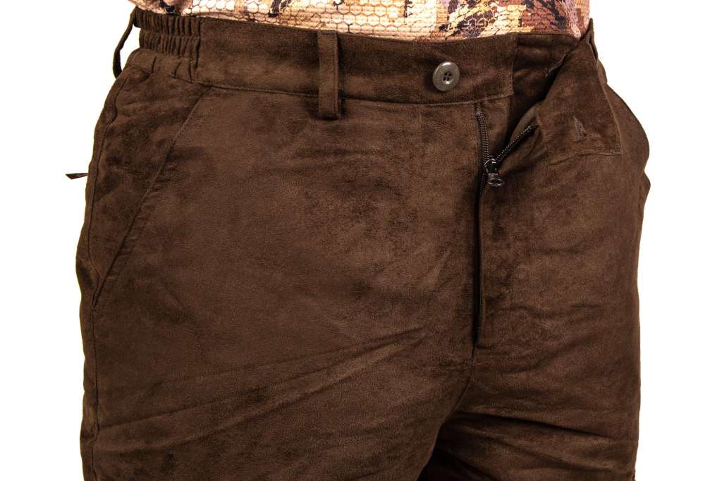 Застібаються штани традиційно на блискавку і гудзика, для кращої посадки на фігурі є шлевки, через які можна вставити пояс.