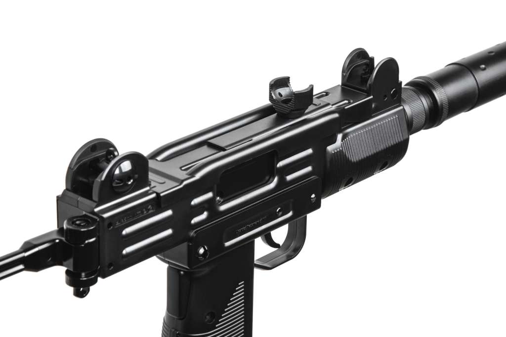 Пістолет-кулемет Umarex IWI Mini Uzi чудово виконана пневматична газобалонна копія знаменитої Ізраїльської зброї спеціальних підрозділів. Місткість обойми становить 28 кульок, а балон СО2 розташований у рукоятці пістолета-кулемета. Сталевий складний приклад та пластикова імітація саунд-модератора дозволяють за лічені секунди зробити з компактного пістолета повноцінну гвинтівку довжиною у 74 см. Система імітації затворного ходу "Blowback" посилює враження при стрільбі. Всі деталі виготовлені дуже якісно та чудово підігнані одна до одної.