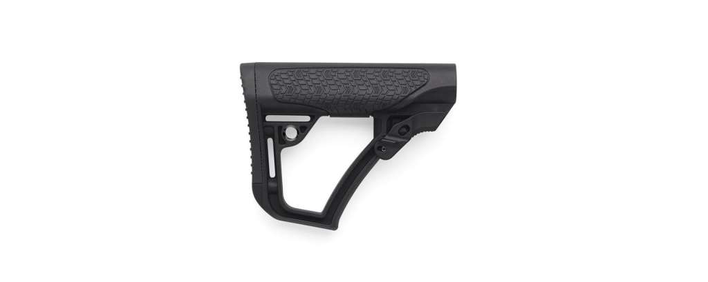 Приклад Daniel Defense призначений для заміни стандартного прикладу на карабіні AR15. Регульований приклад Daniel Defense виготовлений із запатентованої суміші полімерів, наповнених склом, та оброблений м'яким каучуковим напиленням. Новий приклад виготовлений з прецизійною точністю для подовжувачів ствольної коробки, що відповідають військовим стандартам, і має дуже невеликий люфт вперед або вбік, що характерно для багатьох інших прикладів. Все це призводить до міцного прикладу, який дає стрілкові зручну і повторювану вкладку а також безпрецедентний контроль над вогнепальною зброєю. Приклад можна використовувати з одним з двох потиличників, що додаються, або взагалі без потиличника, щоб адаптувати гвинтівку до будь-якої екіпіровки, яку повинен носити користувач. Потиличники бувають двох розмірів: товстіша опукла форма (0,8 дюйма) і тонша увігнута форма (0,5 дюйма). Крапки кріплення QD з обмеженим обертанням вбудовані з обох боків приклада для двостороннього кріплення ременя. Призначений для труб типу Mil-Spec.