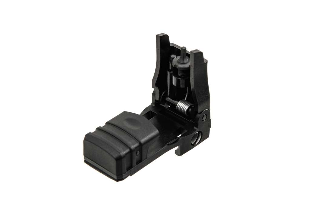 Полімерна відкидна мушка зі стандартним регулюванням висоти кріпиться на планку Пікатінні. Тонкий профіль дозволяє прицілу розташовуватися під більшістю оптики.