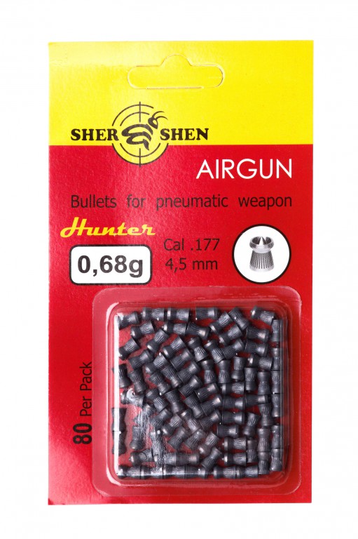 Експансивна куля 0,68 г "Hunter" - куля з порожниною (поглибленням) у головній частині (Hollow Point) вирізняється підвищеною дією внаслідок того, що головна частина кулі "розкривається" (збільшується в діаметрі) під час потрапляння в ціль. Призначені для розважальної стрільби. Куля надійно "розкривається" або дефрагментується тільки при влучанні на досить значних швидкостях (зазвичай не менше 250 м/с).