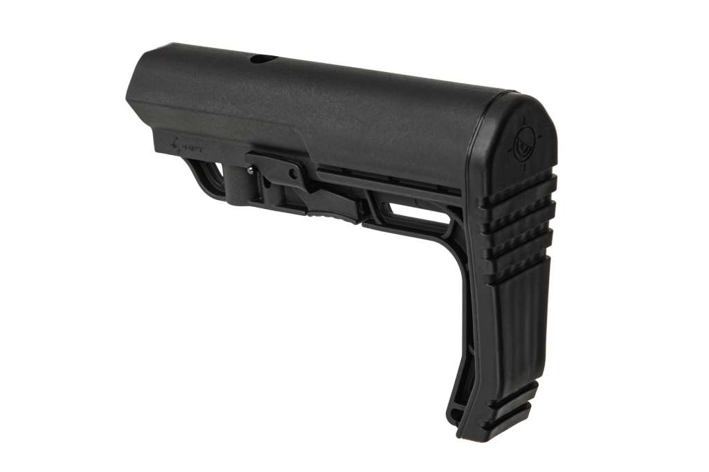 Усі функціональні вимоги виконуються при невеликій вазі 164 грами! Цей приклад адаптується та змінюється відповідно до вашого середовища або експлуатаційних потреб за рахунок використання спеціальних кріплень для аксесуарів. Найлегший приклад у своєму роді на ринку. ● Нековзний матеріал та форма потиличника забезпечують надійну фіксацію прикладу під час стрільби. ● Виготовлений із міцного полімеру розробки Dupont's Military Plastic Division ● Оснащений гніздом QD для швидкознімного кріплення ременя ● Над щокою прикладу передбачено кріплення для встановлення додаткової знімної щоки ● Призначений для встановлення на буферну трубу типу Commercial.