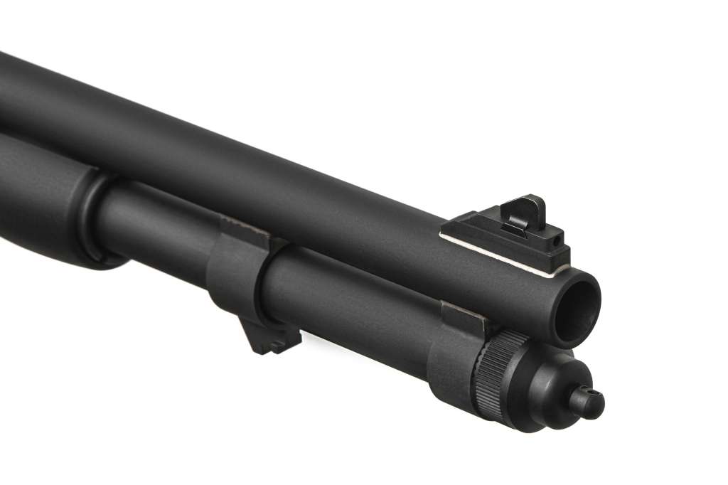 Рушниця має потовщений ствол довжиною 20", магазин на 8+1 патрон.