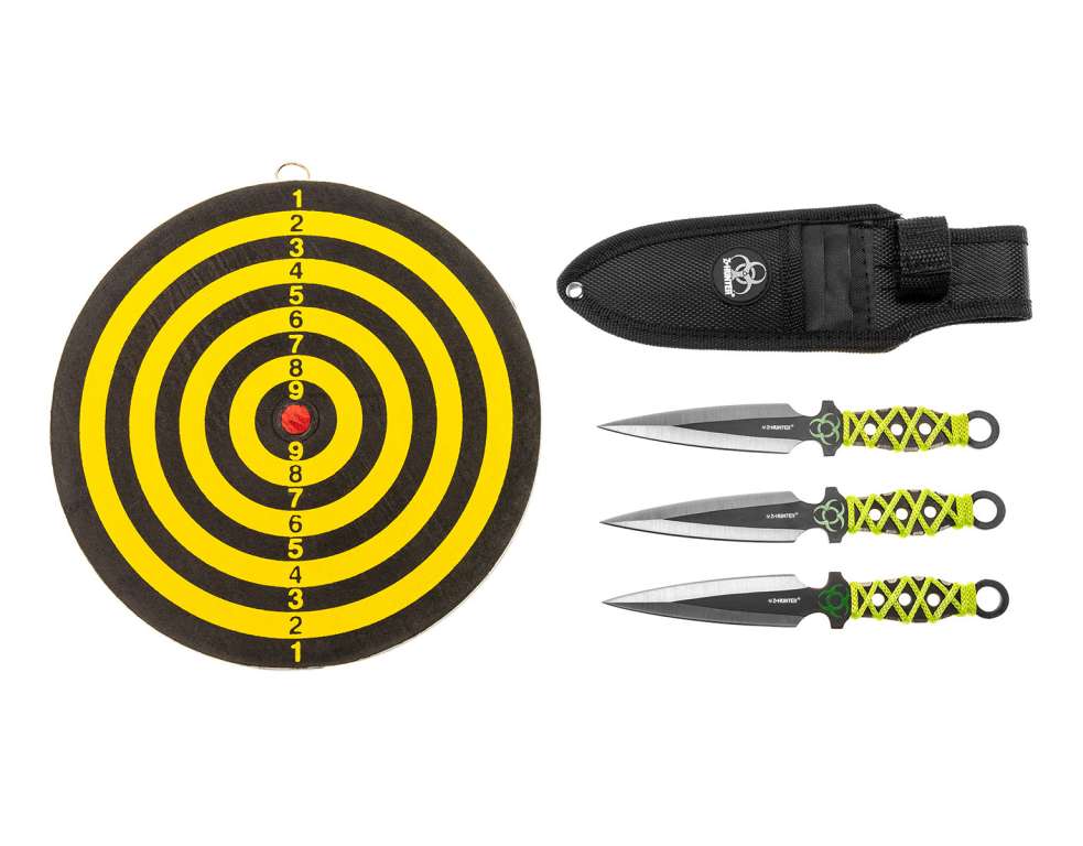 Набір метальних ножів. Загальна довжина одного становить 165 мм. У чохлі. У комплекті мішень діаметром 23 см.