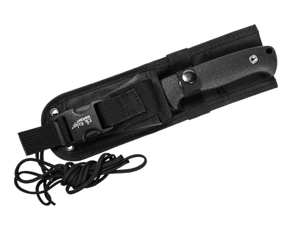 У комплект входить функціональний нейлоновий чохол. Його можна прикріпити як до ременя, так і до спорядження в будь-якій конфігурації завдяки петлям і отворам. Для збірки можна використовувати паракорд. До кобури пришита кишеня, в якій знаходиться трут з пластиною і алмазний брусок.