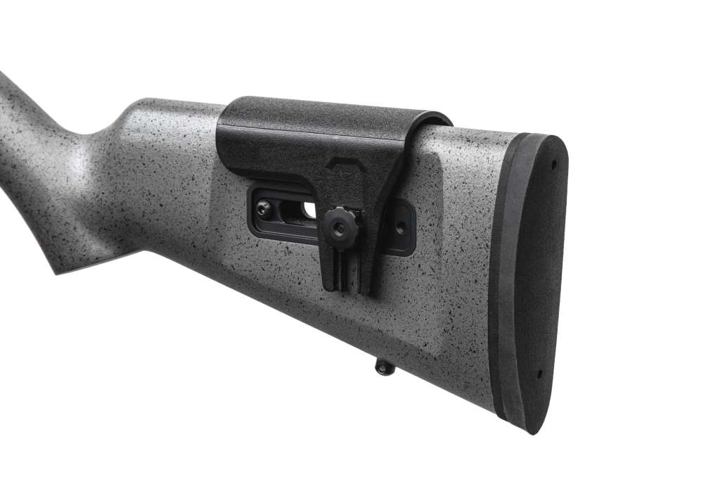 -Регульована щока може бути переміщена відповідно до різної висоти та положення прикладу, щоб створити індивідуальне регульоване відчуття, яке є стабільним і зручним для установки оптики.