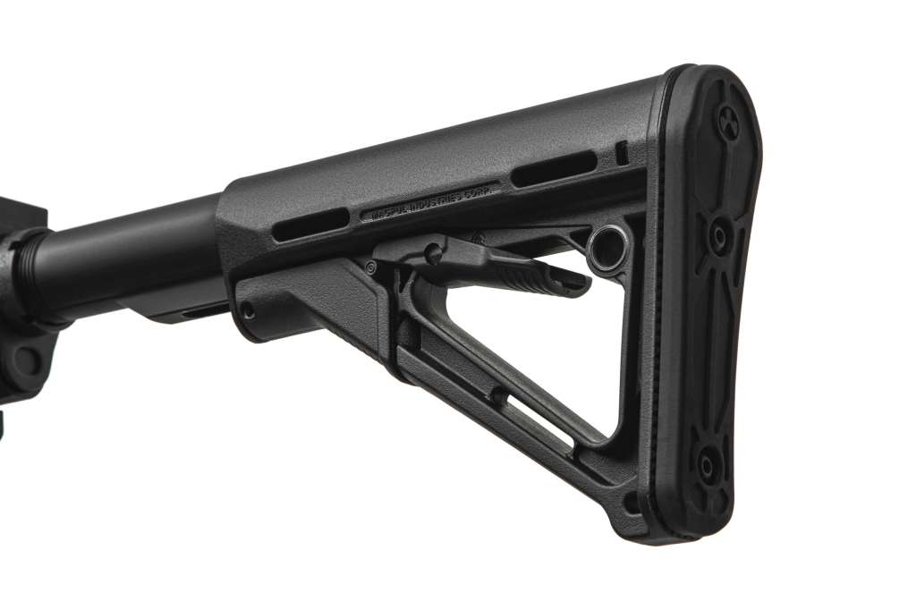 На карабіні встановлений міцний і легкий регульований 6-позиційний приклад Magpul CTR з кріпленнями під QD антабку.