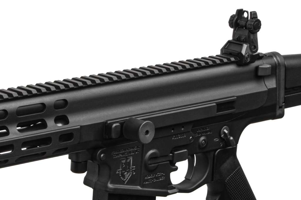 -Особливістю карабіна є швидке від'єднання аппера від ловера-в тій частині, яка ближче до ствола встановлений звичайний пін, а ось передню частину можна з легкістю від'єднати за допомогою спеціальної кнопки.