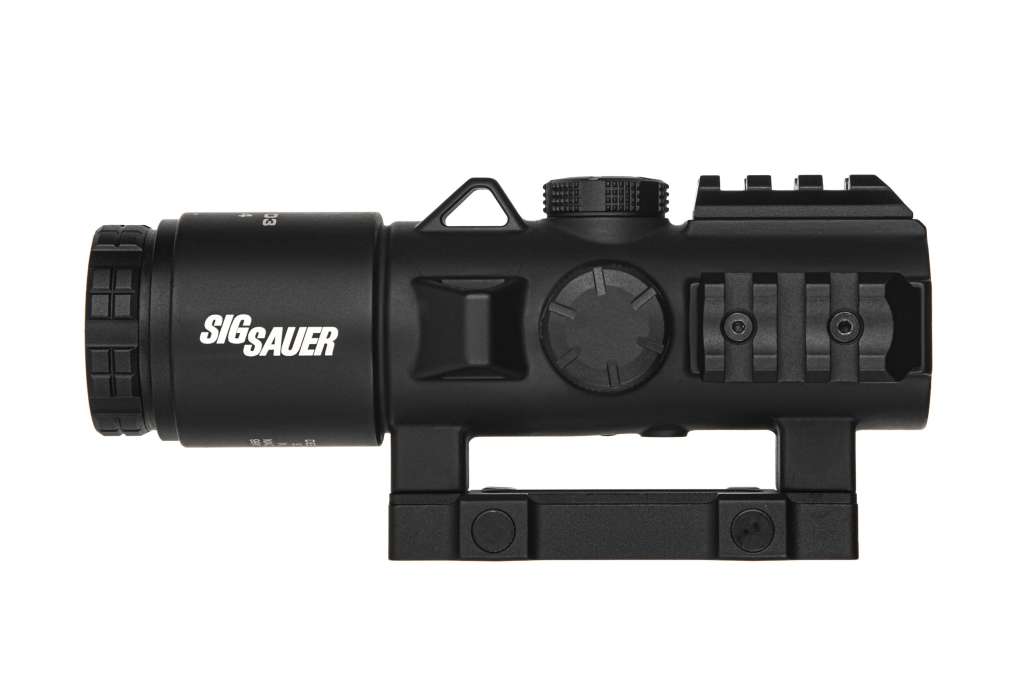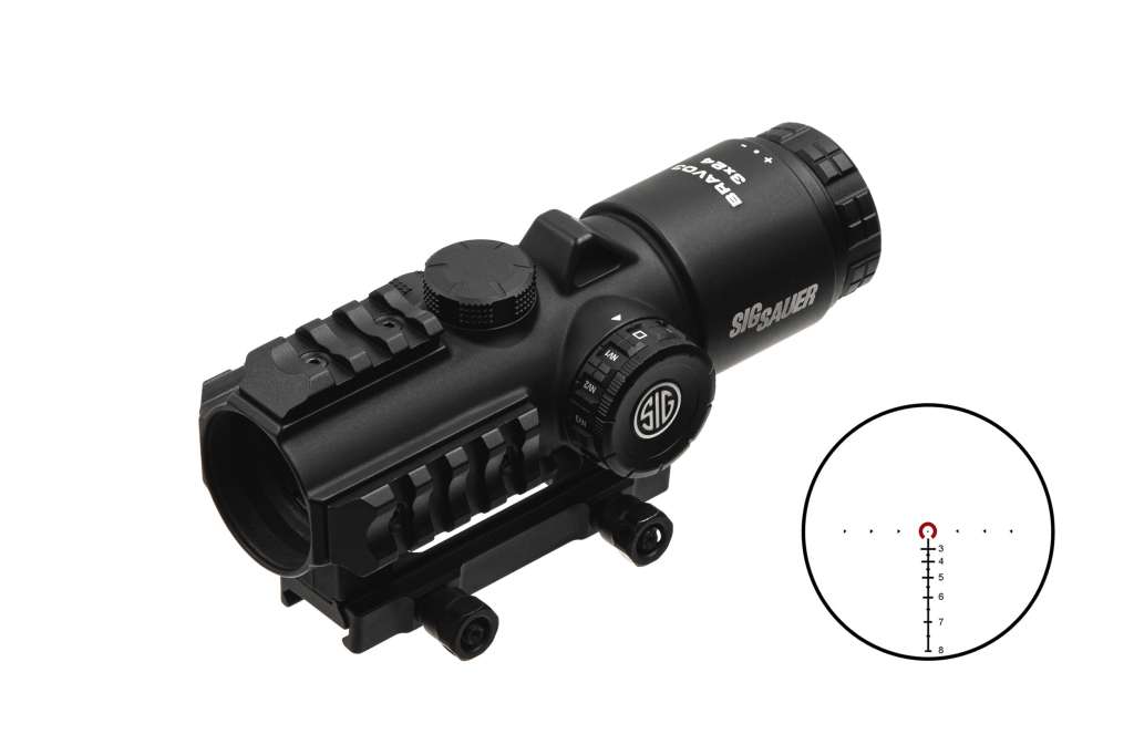 SIG Sauer BRAVO3 має радикально новий дизайн для професійних і цивільних AR-стрілків. Приціл забезпечує найкраще в галузі поле зору, яке на 43% ширше, ніж у поточних бойових прицілів. Надзвичайно плоске зображення без спотворень може похвалитися безпрецедентною чіткістю завдяки поєднанню скла з низькою дисперсією (LD) і конструкції асферичних лінз. Легкий і в той же час міцний магнієвий корпус має вбудовані планки Пікатінні з трьох сторін для додаткових аксесуарів, таких як ліхтарі та лазери. BRAVO3 розроблений з висотою 39 мм від верхньої частини рейки Пікатінні M1913 до центральної осі об’єктива для сумісності з прибором нічного бачення.