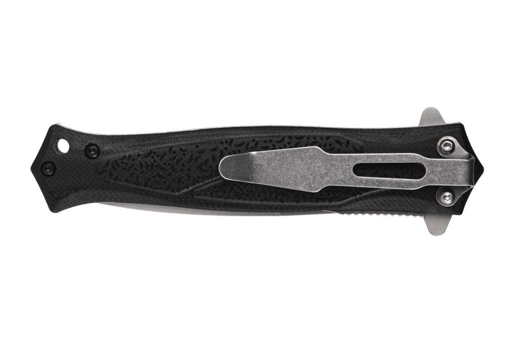 EF169 – це тонкий складаний ніж із замком типу лайнер-лок та клинком на шарикопідшипнику та фліппером для швидкого та плавного відкриття. Майже симетричний дизайн леза та рукояті надає йому елегантного тактичного вигляду, який підкреслюється піскоструминною обробкою клинка з нержавіючої сталі марки 440A. Для безпечного користуваня та швидкого доступу ніж має текстуровані обкладки рукояті G10 та глибоку кліпсу для носіння в кишені вістрям вниз.