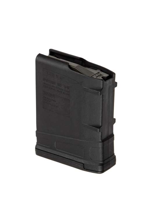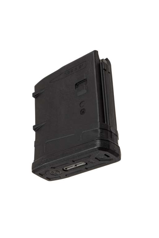 PMAG 10 LR/SR GEN M3 - це легкий та дуже надійний магазин для гвинтівок моделі SR25/M110 з мінімально можливим розміром магазину. Він має місткість на 10 набоїв і включає корпус з постійним вигином, високоякісну пружину з нержавіючої сталі, штовхач, що само змазується, що перешкоджає нахилу, і чохол, що замикається, від удару / пилу. Розкльошена нижня пластина, що легко розбирається, полегшує вилучення і поводження з магазином, а також забезпечує поліпшений захист від падіння. Знімна протиударна/пилозахисна кришка, що входить в комплект, може використовуватися для мінімізації попадання сміття та захисту від можливого пошкодження верхнього картриджа під час зберігання та транспортування. Просте розбирання без інструментів полегшує чищення та технічне обслуговування.