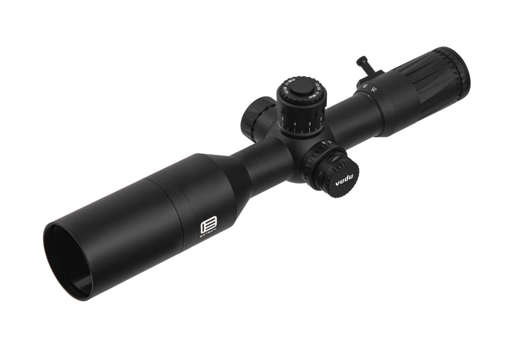 Vudu 5-25X50 у першій фокальній площині ідеально підходить для гвинтівок з короткою платформою. Маючи довжину 285 мм, 5-25X є одним із найкоротших гвинтівкових прицілів з першою фокальною площиною на ринку. Барабанчик включає систему блокування EZ Chek Zero Stop від EOTECH.
