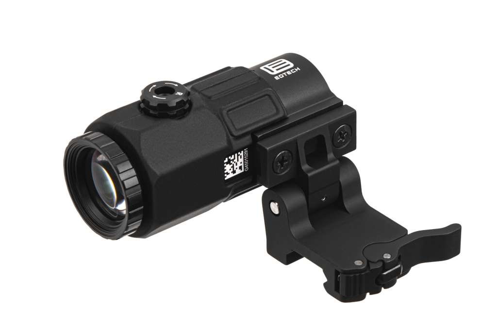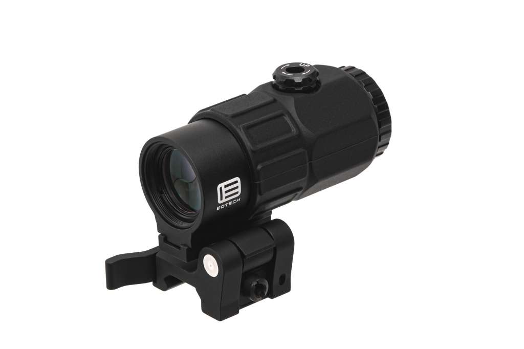 5-кратний збільшувач EOTech G45.STS mini має ті ж вагові та габаритні характеристики, що й збільшувач EOTech G33, але з додатковим 2-кратним збільшенням для точного прицілювання на великих відстанях. Відкидне кріплення забезпечує швидкий перехід від 5X до 1X, а оптична система збільшувача має вертикальне та горизонтальне регулювання без інструментів з великим полем зору. G45 сумісний із усіма моделями EOTECH HWS.