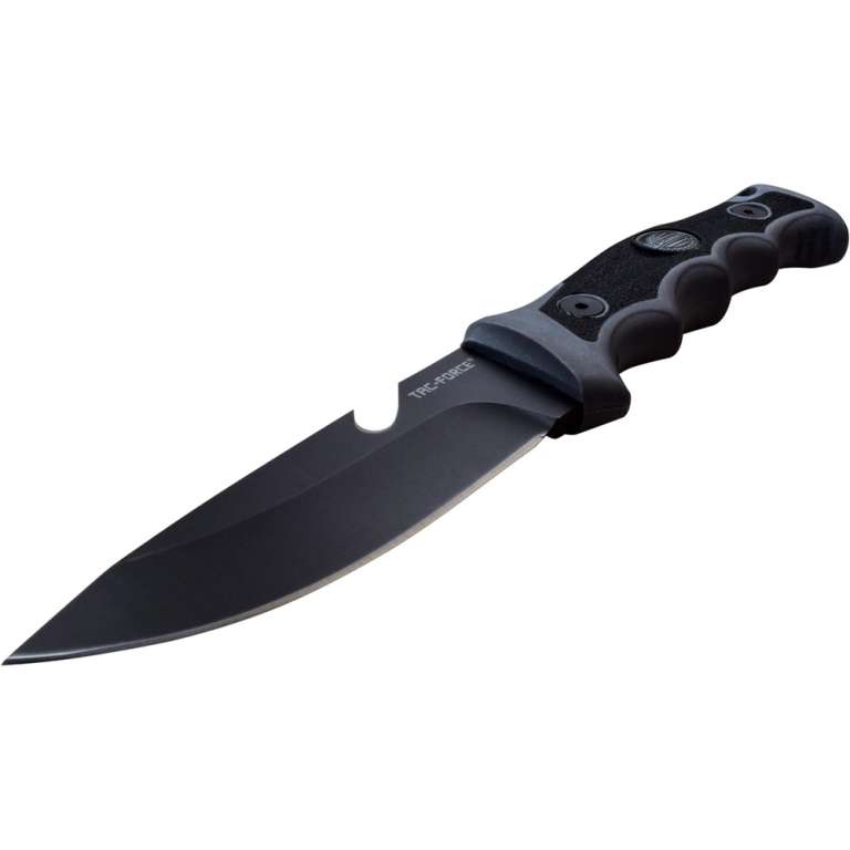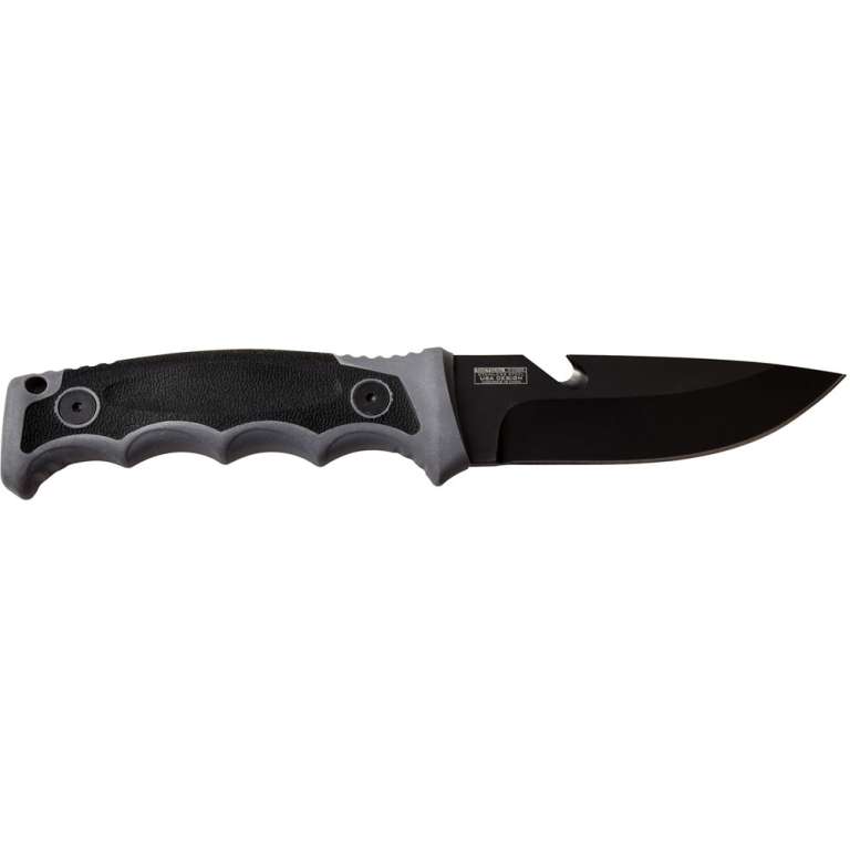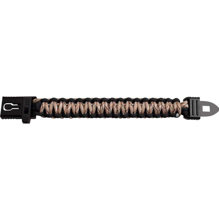 Фіксований тактичний ніж із стропорізом на обусі. У комплекті зручні багатопрофільні нейлонові піхви, що дозволяють носити ніж на поясі або на нозі, а також паракордовий браслет.