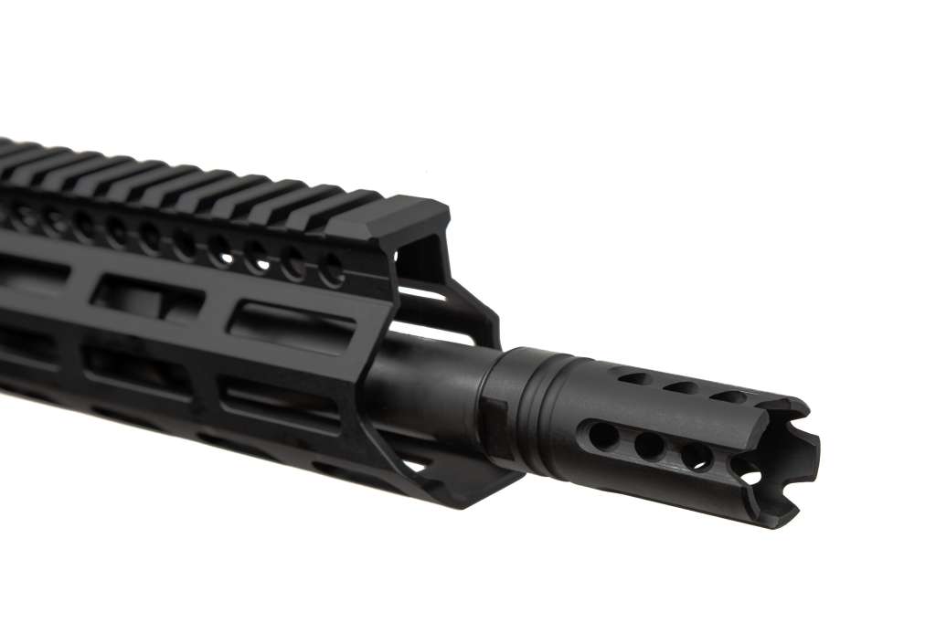 16-дюймовий ствол із запатентованої сталі Cold Hammer Forged з хромованим облицюванням забезпечує точність та довговічність протягом усього терміну служби. ДГК є чудовим пристроєм розробки Daniel Defense, виконаний з нержавіючої сталі 17-4 PH, оброблений нітридом. Дульна різьба на кінці ствола 5/8-24 TPI.