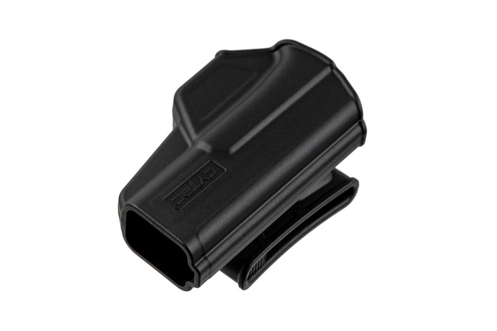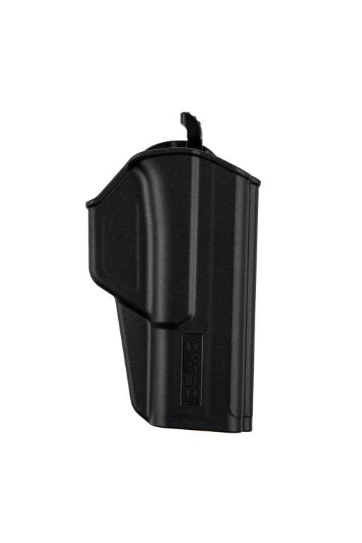 У кобурі Cytac T-ThumbSmart використовується дизайн розблокування великим пальцем, що базується на концепції безпечного носіння та швидкості виймання. Підходить для бою, навчання стрільбі та особистого захисту. Для деяких регіонів, де заборонені кобури з вийманням вказівним пальцем, кобура T-Thumb Smart є ідеальним спорядженням. У кобурі T-ThumbSmart використовується безпечний механізм розблокування для великого пальця, що забезпечує абсолютно новий рівень безпеки та маскування. Кнопка розблокування великим пальцем захована між тілом користувача та корпусом кобури, що ефективно запобігає викраденню чи крадіжці зброї злочинцями. Виготовлений із міцного полімерного пластику. Має сумісність із Glock 17, Glock 19, Glock 19 Gen 5, Glock 42, Glock 43.
