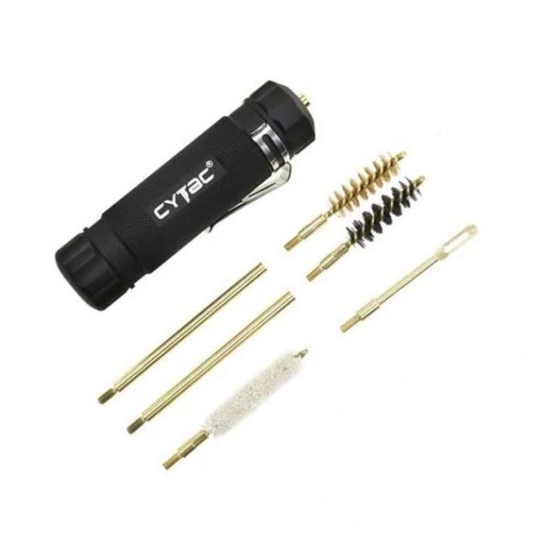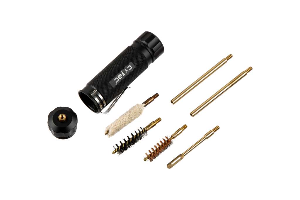 Компактний набір для чищення 9 мм пістолета. Він оснащений металевою кліпсою, що дозволяє прикріпити його до краю кишені. Усі елементи набору можна зберігати у внутрішньому відділенні, доступ якого здійснюється шляхом відгвинчування головки. У комплект входять: дві нейлонові щітки, пуховка, двосекційний шомпол. Набір виготовлений з металу та пластику. Набір для чищення підходить для калібрів: .22, .30, .38, .40, .45.