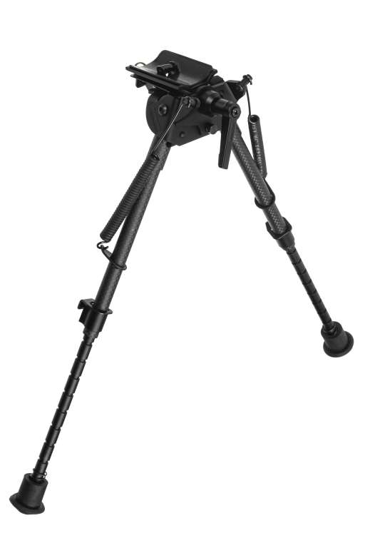 Сошки призначені для застосування на полюванні та стрільбі. Кріпляться на гвинтівки за допомогою антабки або планки Пікатінні через адаптер. Висота сошок становить від 230 мм до 345 мм залежно від висування ніг, які мають 10 рівнів регулювання (по 11.5 мм кожен рівень). Ніжки, покриті гумовими втулками, запобігають ковзанню, можуть використовуватись як на грубих поверхнях, так і на твердих ґрунтах. Для того щоб висунути ноги, необхідно натиснути на кнопку. Пружини також покриті гумовими втулками. Завдяки тому, що корпус Carbon Fiber 9-13.5" Swivel Spring виготовлений з алюмінієвого сплаву 6061-T6, а ніжки з вуглецевого волокна, сошки мають легку вагу. Верхня частина сошок покрита гумою, щоб не подряпати зброю. Сошки мають блокування важелем для того, щоб забезпечити кращу стійкість.