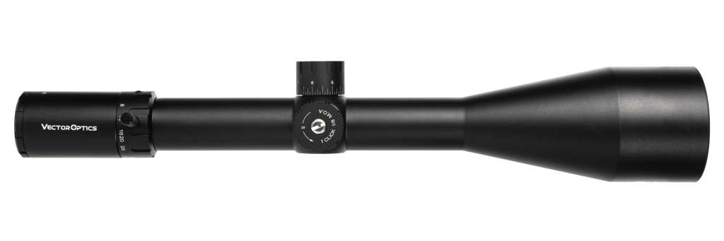 Ціна кліка становить 1/8 МОА з функцією скидання нуля та блокуванням барабанчика поправок. Загальний діапазон регулювання поправок – понад 55 МОА, мінімальна відстань бічного налаштування паралаксу – 20 метрів. Для більш швидкого та комфортного збільшення кратності можна використовувати додатковий знімний важіль.