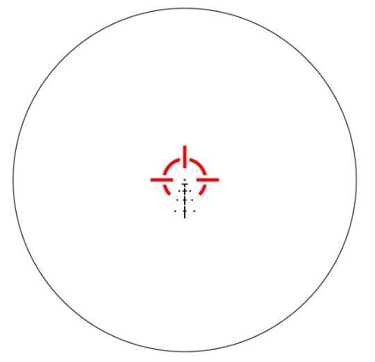 Прицільна сітка має 10 рівнів підсвічування червоним кольором точки 1 МОА та кільця навколо точки для оптимізації надшвидкої стрільби.