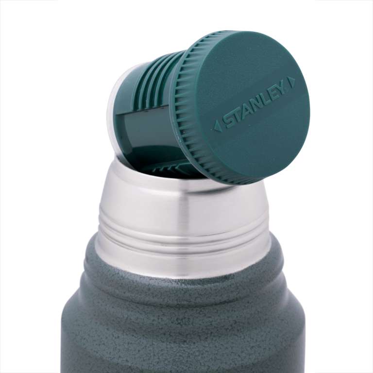 Подвійна вакуумна ізоляція. Захисна конструкція з подвійними стінками. Витримує удари і падіння; Ізольована кришка може використовуватися як питна чашка (250 мл); Герметична зручна пробка. Легко закривається. Рідина виливається з отворів спереду і ззаду; Виготовлений з нержавіючої сталі. Гладка поверхня; Оздоблення нержавіючої сталлю. Стійкість до зношування і погоди; Міцна тверда ручка Класичний, один з найпопулярніших термосів Stanley. Корпус з нержавіючої сталі, металева обробка і важка тверда ручка забезпечать вас гарячою водою для кави або чаю в будь-якій ситуації. Щоб під час використання термоса напій не остигав дуже швидко, в даній моделі термоса передбачена можливість наливати рідину, що не відгвинчуючи пробку повністю. Для цього відверніть пробку на один повний оборот проти годинникової стрілки, переконавшись, що вона не випадає, та налийте з тих сторін, де на верхній частині вказані стрілочки від верху до країв. Зберігає температуру протягом 24 годин