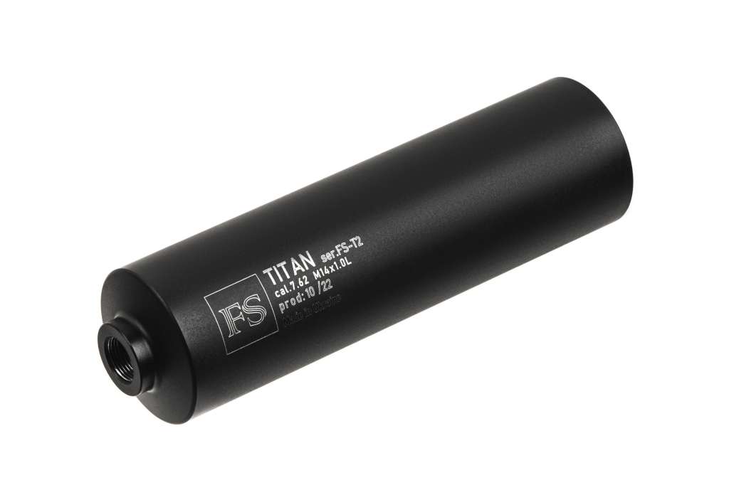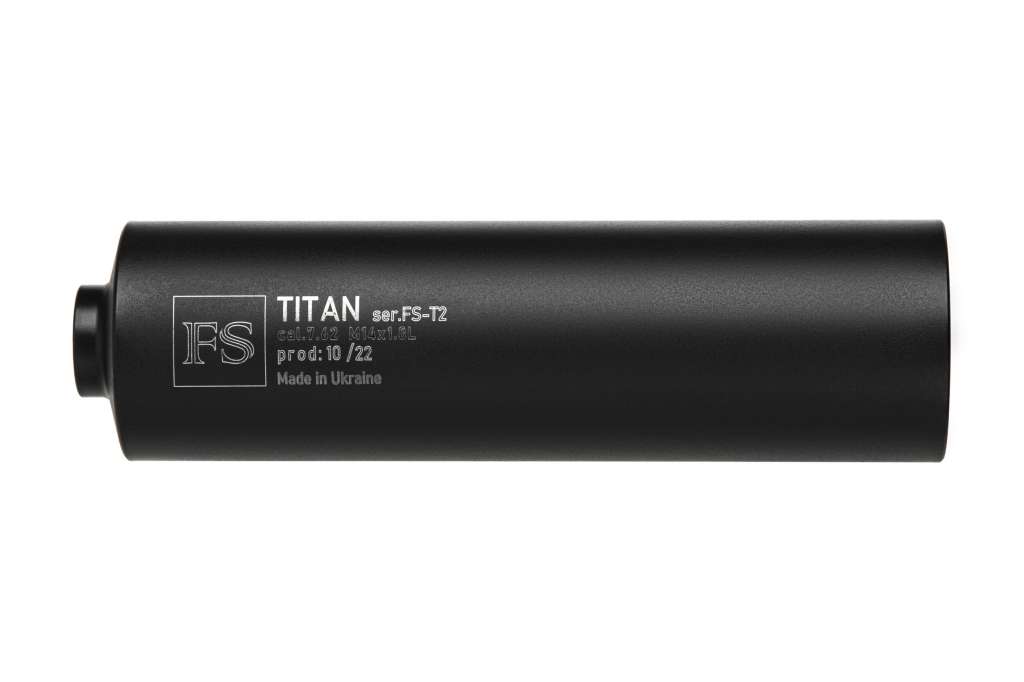 Глушник Титан FS-T2 кал.7.62 м14х1.0L був розроблений для того, щоб витримувати максимальні навантаження. Матеріалом виготовлення є сталь марки 40x, це міцна сталь, що витримує підвищені навантаження. 8-камерний глушник зроблений у монолітній конструкції, тобто розібрати його можливості немає. У середньому він знижує звук від пострілу приблизно на 25-27 Дб, тобто від 45-60% (залежно від моделі зброї та умов використання). Загальна маса становить приблизно 670 гр, а довжина трохи більше ніж 17 см.