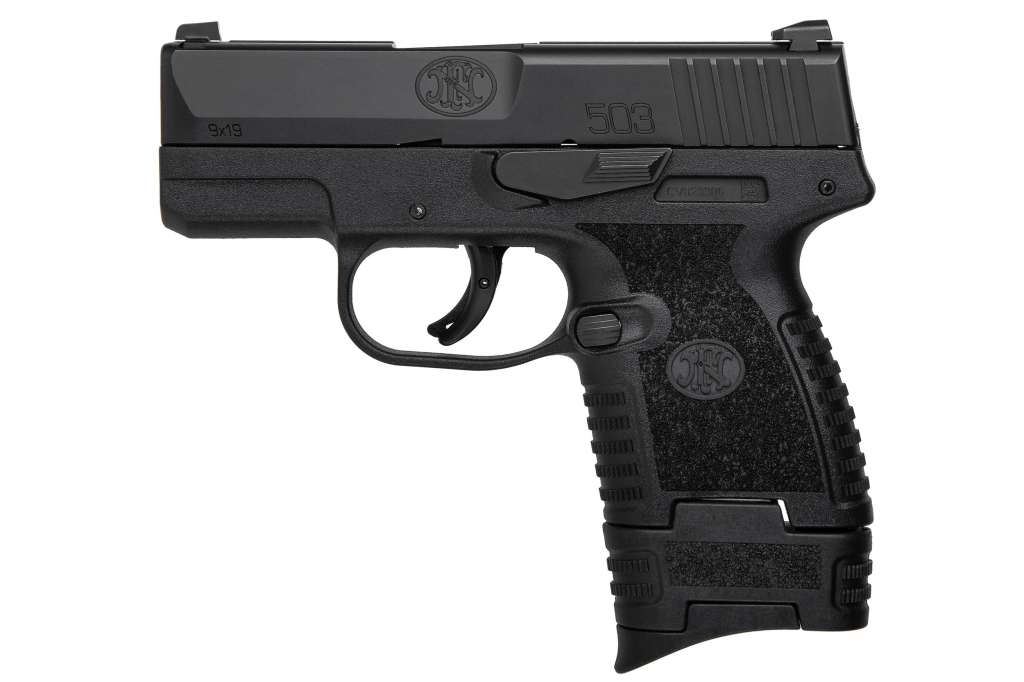 FN 503 забезпечує впевненість стрілок, які очікують більшого від свого пістолета для прихованого носіння. Кращий у своєму класі суцільнометалевий спусковий гачок легко та чітко спрацьовує. Прицільні пристрої, в стилі 509, з трьома люмінесцентними точками дозволяють швидко й інтуїтивно прицілюватися. Полімерна рама, механічно міцна та термічно стійка. Ергономічне руків'я запобігає закусанню кожухом-затвора. Пістолет FN 503 має абсолютно нову текстуру руків'я, призначену для впевненішого хвату при стрільбі, а також для комфорту при довгому носінні. Задні насічки на затворній рамі забезпечує додаткове зчеплення з рукою. У комплекті 2 магазини на 6 та 8 патронів.