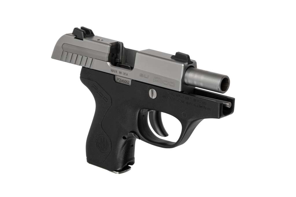 Пістолет Beretta Pico розроблений таким чином, щоб його можна було легко та інтуїтивно розбирати та збирати. Його серцевиною є серійне модульне шасі, а це означає, що раму можна легко замінити відповідно до уподобань користувача. Він має надміцну конструкцію з нержавіючої сталі/полімеру та амбідекстерну кнопку скидання магазину. Постачається з кейсом для зберігання та двома магазинами з нержавіючої сталі 6+1 (один урівень, другий подовжений), Pico оснащений регульованими швидкознімними прицільними пристроями. Пістолет виробляється в США та поєднує в собі всю надійність та якість Beretta як лідера нового покоління вогнепальної зброї для прихованого носіння.